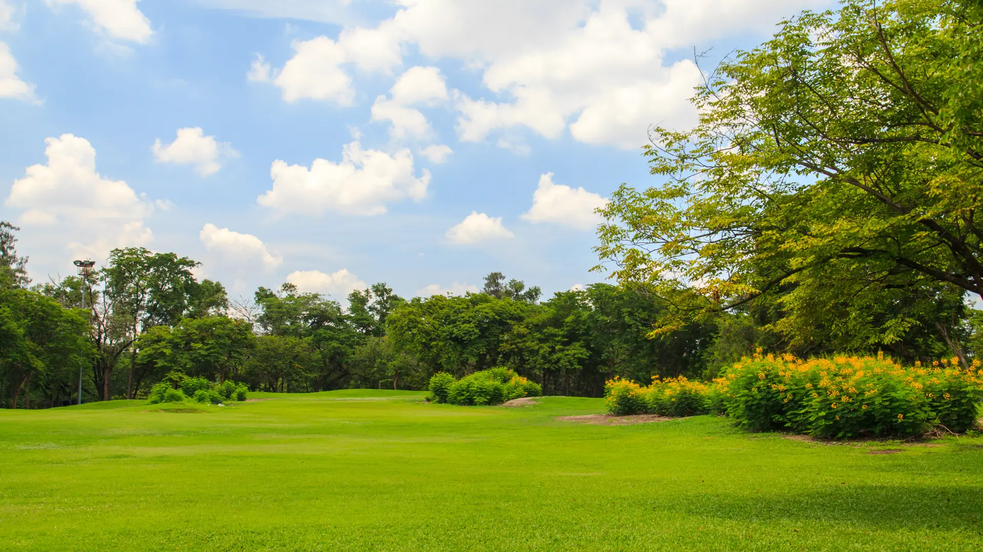 Parc verdoyant avec arbres et pelouse